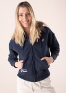 „SuperDry“ moteriškas džemperis iš storo trikotažinio audinio yra išskirtinai minkštas ir šiltas, išreiškiantis sportinį stilių. Jis užsegamas užtrauktuku priekyje, o pamušalu išklotas gobtuvas reguliuojamas priekyje raišteliais. Priekyje prisiūtos atviros kišenės, o išoriniuose šonuose yra briaunuoti apvadai, suteikiančios daugiau elastingumo. Stilingi ilgi apvadai puošia rankoves ir apatinį kraštą o ant krūtinės ir dešinės pusės kišenių yra prekės ženklo emblemos. Modelis yra 177 cm ūgio ir dėvi S dydžio drabužius.