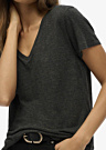 Sieviešu SuperDry T-krekls ir viegls un patīkams, ar V veida kakla izgriezumu un īsām piedurknēm. Brīvs kritums un maigs audums ļauj justies labi visas dienas garumā. Neliels, viegli mirdzošs akcents piešķir tēlam smalku eleganci gan ikdienai, gan svētkiem.