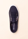 Vienkāršas Superga zīmola kedas ar tekstila virspusi ir ideālas valkāšanai ikdienā. Auklu aizdares nodrošina komfortu, regulējot apavu spriegojumu. Ārmalā neliels zīmola uzraksts. Iekšējā apdare no tekstila, kas pielāgojas kājai, nodrošinot komfortu valkāšanas laikā. Iekšzole ērta. Ārzole gumijota, nodrošina lielisku saķeri ar dažādām virsmām. Zoles augstums 3 cm. 39.izmēra apavu svars ir 395 g. Krāsa: tumši zila.