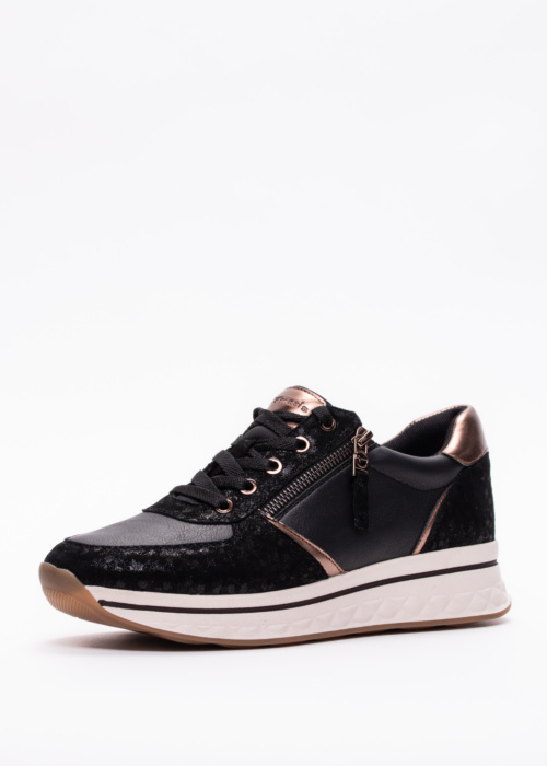 Tamaris Comfort sieviešu ikdienas apavi ir lieliska izvēle aktīvai ikdienai. Šie apavi nodrošina ērtības un praktiskumu visas dienas garumā. Apavu augšdaļā ir sasienama aukla, kas piešķir tiem unikālu izskatu un nodrošina labāku piegulšanu. Sānos ir ērts rāvējslēdzējs, kas atvieglo apavu uzvilkšanu un novilkšanu. Papēdī ir dekoratīvs elements, kas kopā ar interesanto rakstu uz zoles piešķir apaviem stilīgu un modernu izskatu.