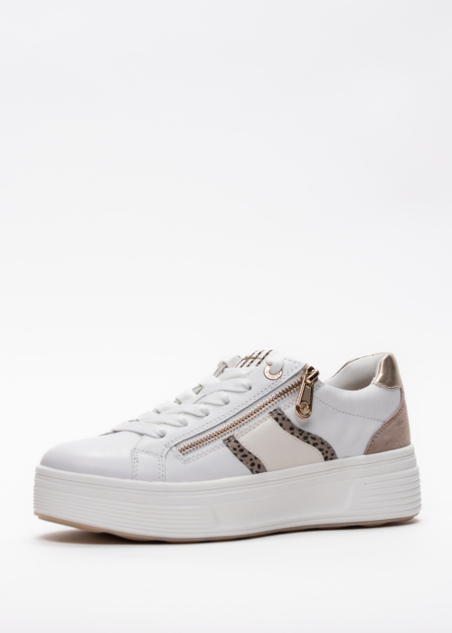 Tamaris Comfort sieviešu kedas ir moderni un stilīgi apavi ikdienas valkāšanai. Tās izceļas ar platformas zoli, kas nodrošina papildu komfortu un eleganci. Virspusē ir sasienama josta, kas piešķir kedām unikālu izskatu un ļauj pielāgot to piegulšanu. Sānos ir ērts rāvējslēdzējs, kas atvieglo apavu uzvilkšanu un novilkšanu. Šīs kedas ir lieliska izvēle sievietēm, kuras vēlas apvienot stilu ar praktiskumu.