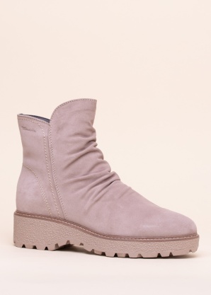 Moderni un ērti Tamaris puszābaki ir ideāli valkāšanai sievietei, kas novērtē vienkāršību un komfortu, vienlaikus vēloties justies stilīgi. Priekšpuse ar efektīgi izkrokotu virsmu piešķir akcentu kopējam iespaidam. Iekšmalā ir rāvējslēdzējs, ļaujot valkātājam ērti uzvilkt zābakus kājās. Iekšpusi klāj kvalitatīva un izturīga zamšāda, kā arī patīkami mīksta un silta odere ar dabīgu vilnu, kas nodrošina valkātāja pēdai patīkamu siltumu un ērtu iekšzoli. Ārzole ar paaugstinātu dizainu, papēža daļas augstums 4,5 cm. Gumijas ārzole ar dziļu rakstu nodrošina saķeri ar dažādām virsmām. 39. izmēra zābaku svars ir 411 g. Krāsa: gaiši rozā.