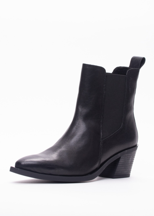 Ten Points sieviešu puszābaki Carmen ir moderns un stilīgs apavu modelis, kas lieliski papildinās jebkuru garderobi. Šiem zābakiem ir sašaurināts purngals un augsts papēdis, kas piešķir eleganci un izsmalcinātību. Pateicoties siltajam materiālam, tie ir piemēroti valkāšanai ikdienā, nodrošinot komfortu un siltumu vēsākos laikapstākļos. Zābaku sānos ir gumijas panelis un zīmola logo, kas piešķir papildu stila akcentu un nodrošina vieglu uzvilkšanu.
