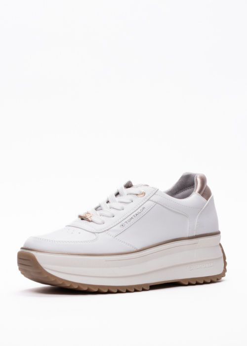 Tom Tailor sieviešu ikdienas apavi ir stilīgi un jauneklīgi, kas lieliski papildina jebkuru garderobi. Apaviem ir platformas zole, kas nodrošina papildu komfortu un modernu izskatu. Virspusē ir sasienama josta, kas piešķir apaviem unikālu un individuālu stilu. Purngals ir perforēts, kas nodrošina labāku ventilāciju un komfortu valkāšanas laikā. Sānos ir zīmola raksts, bet papēdi rotā dekoratīvs elements, kas piešķir apaviem īpašu šarmu.