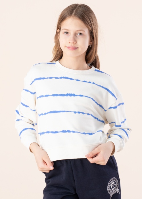 Tom Tailor džemperis der valkāšanai skolā, mājās vai pavadot laiku kopā ar draugiem. Jauneklīgs džemperis ir ar īsāku piegriezumu un ar plānāku stilu , kā arī piedurkņu galos un apakšmalā ir valnīši. Valkāšanas komfortu nodrošina materiāla elastīgums. Foto: augums 154 cm valkā 152 izmēru.
