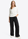 Tom Tailor sieviešu džinsa bikses ir jauneklīgas un stilīgas, piešķirot modernu izskatu ikdienas tērpam. Tām ir plati staru gali un paaugstināta jostasvieta, kas nodrošina komfortu un elegantu siluetu. Josta ir aizdarāma ar pogu un rāvējslēdzēju priekšpusē un aizmugurē, savukārt mirdzošie akmentiņi uz starām piešķir īpašu šarmu.