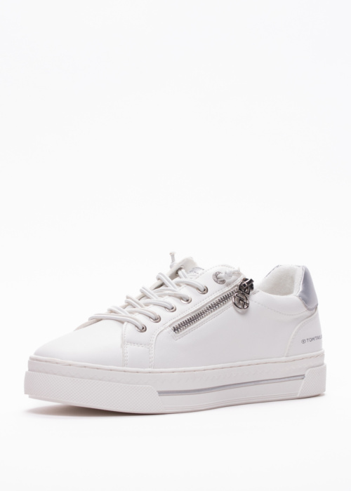 Tom Tailor sieviešu kedas ir pievilcīgs un stilīgs apavu modelis, kas lieliski piemērots pavasara un rudens sezonai. Šīs kedas ir ne tikai praktiskas, bet arī komfortablas, pateicoties elastīgajām auklām virspusē, kas nodrošina vieglu un ātru uzvilkšanu. Sānos iestrādātais rāvējslēdzējs piešķir papildu funkcionalitāti un modernu izskatu. Papēdī iestrādātais Tom Tailor logo un dekoratīvais elements piešķir kedām unikālu un atpazīstamu stilu. Šīs kedas ir lieliska izvēle ikdienas valkāšanai, nodrošinot ērtumu un eleganci jebkurā situācijā.