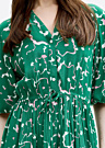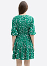 Tom Tailor sieviešu kleita ir lieliska izvēle vasaras dienu baudīšanai, pateicoties tās vieglajam un elpojošajam materiālam. Kleita izceļas ar interesantu rakstu un sievišķīgu dizainu, kas piešķir tai īpašu šarmu un eleganci. Tā ir izgatavota no LENZING™ ECOVERO™ šķiedras, kas iegūta no sertificētiem atjaunojamiem koksnes avotiem, tādējādi atbilstot augstiem vides standartiem un ir draudzīga dabai.