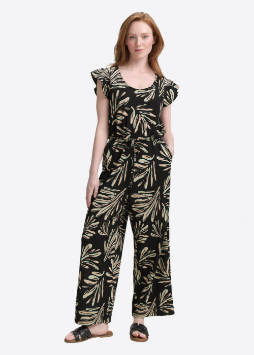 Tom Tailor sieviešu kombinezons ir stilīgs un sievišķīgs tērps, kas lieliski piemērots dažādām situācijām. Tas ir komfortabls un praktisks, pateicoties īsajām piedurknēm un elastīgajam materiālam, kas nodrošina kustību brīvību. Kombinezonam ir pogu aizdare uz muguras, sasienama josta un gumija viduklī, kas izceļ sievišķīgo siluetu un piešķir papildu ērtības.