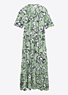 Tom Tailor sieviešu kleita ir lieliska izvēle vasaras sezonai, kas piešķirs jūsu garderobei svaigumu un stilu. Kleitai ir īsas piedurknes un ziedu raksts, kas piešķir tai sievišķīgu un elegantu izskatu. Sasienamā josta viduklī ļauj pielāgot kleitas piegulumu, izceļot jūsu figūru.