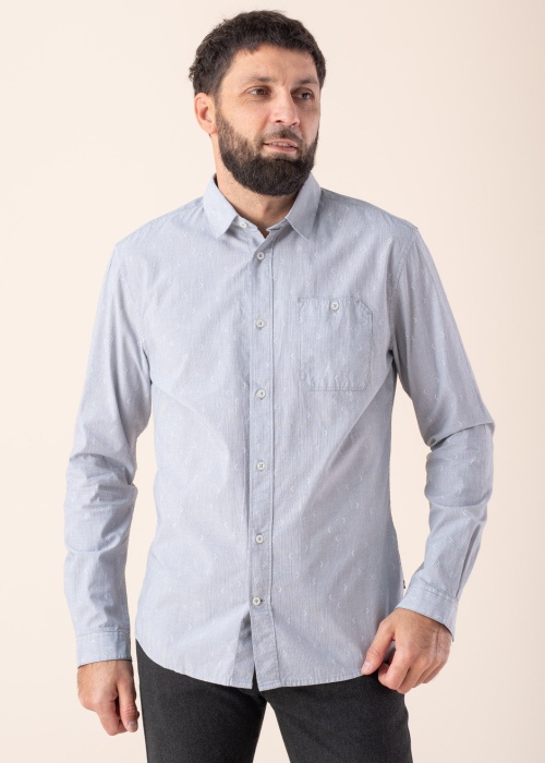 Lietišķs Tom Tailor krekls der vīrietim, kurš novērtē stilu. Priekšpusi nostiprina ar pogu aizdari un priekšpusē ir aizpogājama kabata. Vienkāršais dizains piesaista ar savu patīkamo izskatu. Prece ir daļa no BE Part kolekcijas, kas radīta no ilgtspējīga materiāla. Foto: augums 188 cm valkā L izmēru.