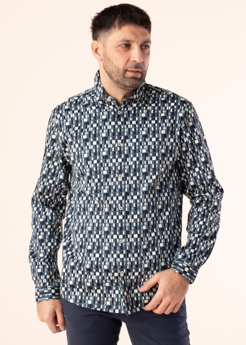Uzmanību piesaistošs Tom Tailor krekls der dažāda rakstura dienām. Rakstains regular Fit piegriezuma krekls ar atlokāmu apkakli un labi pieguļošs. Priekšpusē ir pogu aizdare , kā arī piedurkņu galos ir pogas. Prece ir daļa no BE Part kolekcijas, kas radīta no ilgtspējīga materiāla. Foto: augums 188 cm valkā L izmēru.
