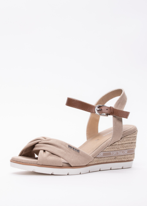 Tom Tailor sieviešu kurpes ir lieliska izvēle ikdienas valkāšanai, jo tās ir vieglas un komfortablas. Šīs kurpes ir aprīkotas ar platformu, kas piešķir papildu augstumu un stilīgumu, padarot tās ideāli piemērotas vasarīgām dienām. Kurpju dizainā ir iekļauta augšdaļas siksna ar sprādzi sānos, kas nodrošina drošu un pielāgojamu piegulšanu. Papildus tam, sānos ir iestrādāta gumija un Tom Tailor logo, kas piešķir kurpēm modernu izskatu.