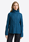 Tom Tailor sieviešu pončo ir adīts tērps ar reljefa rakstu, kas piešķir tam unikālu izskatu. Tas ir veidots ar brīvu piegriezumu, kas nodrošina komfortu un brīvību ikdienas valkāšanai. Pončo ir augsta apkakle ar valnīti, kas piešķir papildu siltumu un stilu. Piedurkņu galos un apakšmalā ir valnītis, bet sānos ir praktiskas velkro aizdares, kas ļauj viegli pielāgot pončo atbilstoši jūsu vēlmēm.