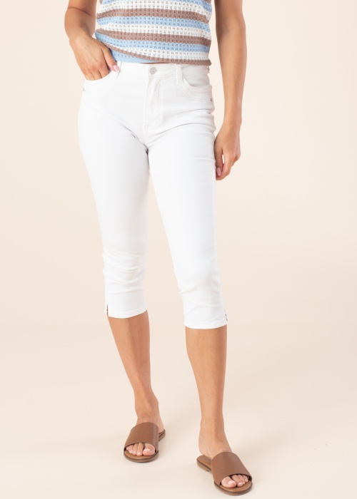Tom Tailor sieviešu pusgarās bikses ir ērts un stilīgs apģērbs ar vienkāršu dizainu, kas piešķir minimālistisku izskatu. Tās ir elastīgas un pieguļošas, padarot tās ideāli piemērotas vasaras sezonai. Biksēm ir atvērtas kabatas gan priekšpusē, gan aizmugurē, un bikšu galos ir neliels šķēlums, kas piešķir papildu eleganci. Šī prece ir daļa no BE Part kolekcijas, kas izgatavota no ilgtspējīgiem materiāliem. Modele, kas valkā šīs bikses, ir 176 cm gara un nēsā 28. izmēru.