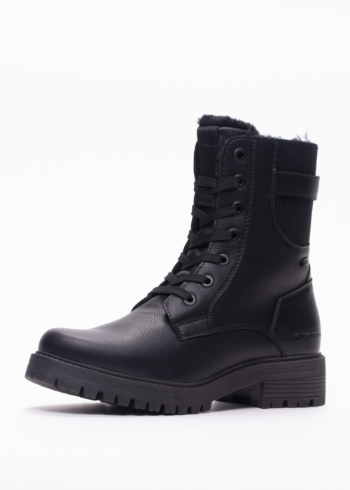 Tom Tailor sieviešu puszābaki Joline ir lieliski piemēroti ikdienas valkāšanai, pateicoties to ērtajam un praktiskajam dizainam. Šie zābaki vienmēr ir moderni, un to siltums nodrošina komfortu aukstākās dienās. Šņores priekšpusē un rāvējslēdzējs sāna iekšpusē padara tos viegli uzvelkamus. Pateicoties Tex membrānai, apavi ir ūdens atgrūdoši un elpojoši, un zīmola raksts uz papēža piešķir tiem īpašu stilu.