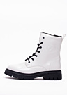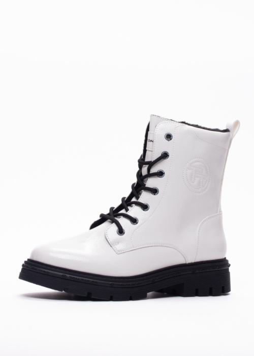 Tom Tailor sieviešu puszābaki Ebba ir moderni un stilīgi apavi, kas lieliski piemēroti ikdienas valkāšanai. Šie spīdīgie puszābaki izceļas ar izteiksmīgu auklu aizdari priekšpusē un praktisku rāvējslēdzēju sāna iekšpusē, kas nodrošina vieglu uzvilkšanu. Papildus tam, zābaku sānos ir elegants Tom Tailor logo, kas piešķir tiem papildu šarmu un atpazīstamību.