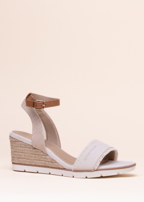 Ērtas un ar platformu Tom Tailor sandales kļūs par vasaras favorīti. Virsma ir izgatavota no tekstila un akcentu piešķir zīmola raksts , kā arī uzmanību piesaistošas dekorācija uz zoles malas. Iekšpusi sienas oderē tekstils, bet iekšzoli, ar ērtu mīkstinājumu klāj mākslīgā āda , kā arī ārzole no sintētiska materiāla. Pārvietošanās komforts visas dienas garumā garantēts!
