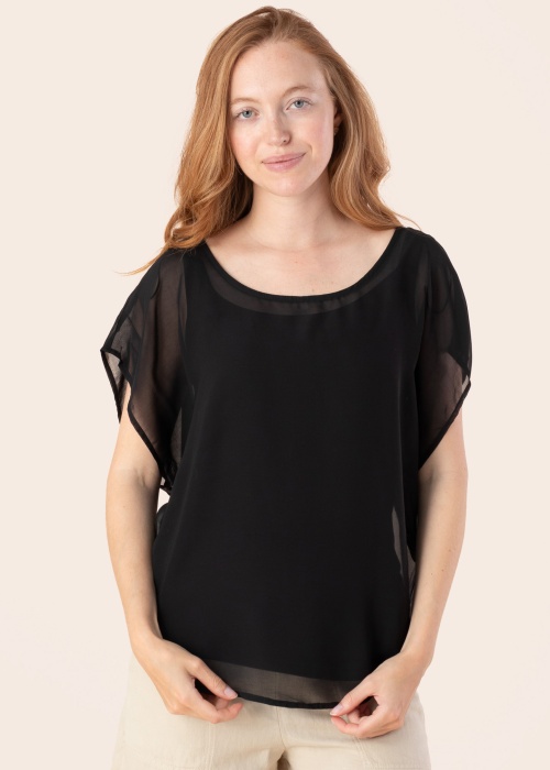 Tom Tailor sieviešu blūze ir stilīgs un gaisīgs apģērbs, kas lieliski papildina jebkuru garderobi. Tā izceļas ar sikspārņa piedurknēm un apaļu kakla izgriezumu, kas piešķir eleganci un komfortu valkātājai. Modele ir 174 cm gara un nēsā S izmēru.