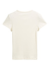 Tom Tailor meiteņu T-krekls ir stilīgs un pievilcīgs apģērbs, kas izceļas ar īsām piedurknēm un elastīgu materiālu. Krekla augšdaļu rotā dekoratīva detaļa, kas piešķir tam īpašu šarmu. Tas ir izgatavots no LENZING™ ECOVERO™ šķiedras, kas iegūta no sertificētiem atjaunojamiem koksnes avotiem. Šis T-krekls ir ražots, ievērojot videi draudzīgu procesu un augstus vides standartus.