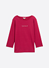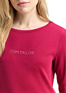 Tom Tailor sieviešu T-krekls ir pievilcīgs apģērbs, kas izceļas ar savu eleganto dizainu. Tas ir veidots ar apaļu kakla izgriezumu un trīs ceturtdaļu garuma piedurknēm, kas piešķir tam modernu un stilīgu izskatu. Krekls ir daļēji pieguļošs un elastīgs, ar izteiksmīgu zīmola logo priekšpusē uz krūtīm un dekoratīvu valnīti uz apkakles, kas piešķir tam papildu šarmu.