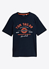 Tom Tailor vīriešu T-krekls ir ērts un piemērots ikdienas valkāšanai. Tas ir ar īsām piedurknēm un apaļu kakla izgriezumu, kas nodrošina komfortu un brīvību kustībās. Krekla priekšpusē ir stilīgs uzraksts, kas piešķir tam modernu izskatu.