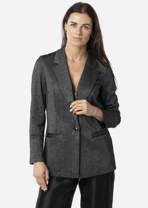Tom Tailor sieviešu žakete ir mirdzoša un svinīga, piešķirot īpašu eleganci jebkuram tērpam. Atlokāmā apkakle un elastīgais audums nodrošina komfortu un brīvību, savukārt brīvais piegriezums sniedz pārliecības sajūtu. Priekšpusē ir pogu aizdare un imitētas kabatas, kas piešķir žaketei stilīgu un modernu izskatu.