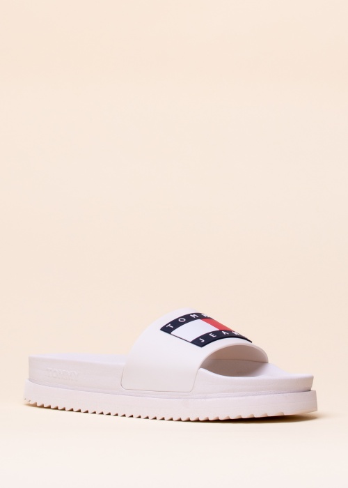 Stilīgas Tommy Jeans baseina iešļūcenes kļūs par vasaras favorīti. Virsma ir izgatavota no sintētiska materiāla un akcentu piešķir zīmola logo. Gan iekšējo virsmu, gan zolīti klāj sintētika. Dodies jaunajā sezonā stilīgi!