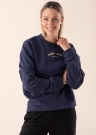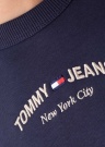 Vienkāršs, stilistiski tīrs un sievišķīgs Tommy Jeans džemperis ar klasisku Crewneck darinājumu. Formu piešķir valnīši apakšdaļā, piedurkņu galos un kakla daļā. Uz krūtīm novietots izšūta stila zīmola uzraksts un minimālistisks logo. Audumam ir patīkami biezāks dizains, un iekšpusi klāj savelkošs darinājums. Modele ir 177 cm gara, valkā S izmēru.