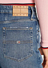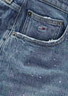 Tommy Jeans sieviešu džinsa bikses ir stilīgs apģērbs ar augstu jostasvietu un nodiluma efektu, kas piešķir tām unikālu izskatu. Šīs bikses ir veidotas ar Mom Fit piegriezumu, kas ir piemērots modes cienītājām, un tās ir aprīkotas ar pogu un rāvējslēdzēju jostasvietā, kā arī kabatām priekšpusē un aizmugurē. Papildus tam, priekšpusē ir mirdzoši akmentiņi, bet aizmugurē - ādas marķējums, kas piešķir biksēm elegantu akcentu.