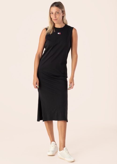 Tommy Jeans sieviešu kleita Badge Tank ir vienkārša un komfortabla, ideāli piemērota valkāšanai vasarā. Kleitai ir valnītis uz apkakles, kas piešķir tai elegantu izskatu. Priekšpusē uz krūtīm ir redzams Tommy Jeans logo, kas padara kleitu atpazīstamu. Sānā ir šķēlums, kas nodrošina papildus komfortu un kustību brīvību. Modeles garums ir 177 cm un viņa nēsā S izmēru.