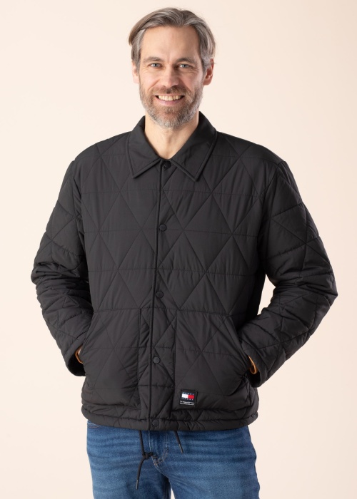 Urbānistiska Tommy Jeans pavasara-rudens virsjaka sniedz siltuma sajūtu un labi izskatās. Viegla pavasara-rudens virsjaka ir ar atlokāmu apkakli un ar stepētu apdari. Priekšpusē aizdare ar spiedpogām un mazākus priekšmetus ir ērti ievietot sānu kabatās ar atvērtu piegriezumu. piedurkņu galos ir spiedpogas , kā arī malas apakšā ir tuneļa aukla. Foto: augums 195 cm valkā L izmēru.