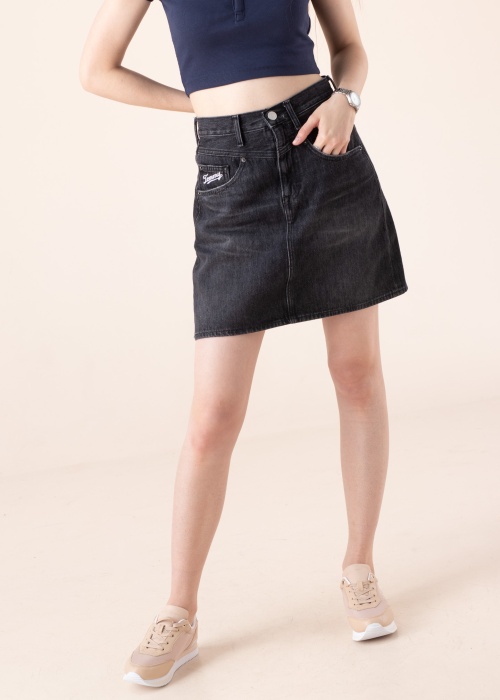 Vienkārši Tommy Jeans džinsa svārki der stilu zinošai sievietei. No neelastīga denima vienmēr moderni džinsa svārki ir ērti un ērti. Vidukļa dala aizdarāma ar pogu un rāvējslēdzēju, priekšpusē un aizmugurē ir atvērtas kabatas. labajā pusē atrodas neliela zīmola rakstu. Foto: augums 175 cm valkā 27 izmēru.