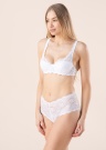 Ar romantiskām mežģīnēm rotātie Triumph krūšturi ļauj ikvienai sievietei justies īpašai. Polsterētās krūštura bļodiņas un atbalstošās stīpiņas piešķir krūtīm skaistu formu. Krūšturim ir regulējamas lencītes un polsterēta trīspakāpju cilpiņu aizdare. Modeļa garums 179 cm, nēsā 75 B izmēru. Materiāls: neilons / poliamīds 55%, kokvilna 19%, poliesters 8%, elastāns 18%. Krāsa: balta.