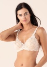 Trimph krūšturis ar skaistām, maigām mežģīnēm ''Amourette 300 W X'' ir skaists un sievišķīgs! Krūšu bļodiņas ir ar atbalsta stīpiņām un bez polsterējuma, smalkās plecu lentes ir regulējamas, un krūšturis uz muguras nostiprinās ar divrindu āķīšiem. Mežģīnes ar ziedu motīviem ir nedaudz caurspīdīgas. Modeles augums 176 cm, valkā 75C izmēru.