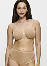 Triumph krūšturis Ladyform Soft ir simpātisks, vienkāršs un bez polsterējuma, un tas ir lieliski piemērots ikdienas valkāšanai sievietēm, kas mīl komfortu. Augšdaļu rotā caurspīdīga mežģīņu tekstūra. Centrā pa vidu ir minimālisma stila bantīte ar skaistu pērlīti. Atbalstu nodrošina speciālās bļodiņas. Plecu lencītes ir regulējama garuma. Krūšturis ir aiztaisāms ar divām aizdares siksniņām - ir trīs pakāpju aizdare. Modeles augums ir 177 cm un valkā 85C izmēru. Materiāls: poliesters 42%, neilons/poliamīds 40%, elastāns 18%. Krāsa: bēša.