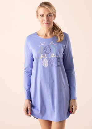 Ērts un jauks Triumph naktskrekls der bezrūpīgai atpūtai. Organiskās kokvilnas naktskrekls ir ādai draudzīgs "un productfeature2". Priekšpusē jauka apdruka. Vienkāršais dizains ir valdzinošs savā vieglumā. Foto: augums 178 cm, valkā 36 izmēru.