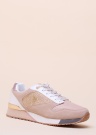 Sieviešu U.S. Polo asociācijas brīvā laika apavi izceļas ar bēšu un zeltītu dizainu. Virsējā apdare kombinēta no tekstila, zamšādas un sintētiska materiāla, ko papildina efektīgas akcenta detaļas. Virspusē klasiska auklu aizdare, aizmugurē zeltīta skava. Ādas zīme uz apavu mēles, logo uz ārmalas un uzraksts uz aizmugurējās papēža daļas. Iekšpusē tekstila odere un iekšzole ar mīkstinājumu no atmiņas putām. Putuplasta starpzole piešķir apaviem vieglumu, un gumijotā ārzole saķer ar dažādām virsmām.
