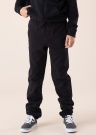 Komfortablas Vans zīmola treniņbikses ir lieliskas valkāšanai arī brīvā laikā, tām ir elastīgas gumijas josta, kuras priekšpusē var piesaistīt ar auklu. Sānos ir atvērtas kabatas, zem kurām labajā pusē ir izšūts zīmola logotips, aizmugurē ir viena atvērta kabata, uz kuras stūrī ir auduma zīmola etiķete. Elastīgās gumijas,bikšu stulmu galos, nodrošina noturību pie potītes. Modelis 147 cm, valkā L izmēru.
