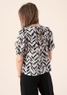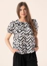 Vero Moda blūze Kathrine ir ar platāku taisnu griezumu, moderniem pleciem un atraktīvu, robotu rakstu. Viegla un gaisīga blūze piemērota kombinēšanai ar dažādiem apģērbiem, no apkakles piesaistot efektīgu vēdekli, zem kuras veidojas sievišķīga atvērta piliena figūra. Modeles augums 178 cm, valkā S izmēru. Materiāls: pārstrādāts poliesters 100%. Krāsa: balta/melna