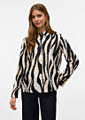 Vero Moda sieviešu blūze Sara ir izteiksmīgs un pamanāms apģērbs, kas izceļas ar savām garajām piedurknēm un interesanto rakstu. Šī blūze ir izgatavota no LENZING™ ECOVERO™ šķiedras, kas iegūta no sertificētiem atjaunojamiem koksnes avotiem, nodrošinot videi draudzīgu ražošanas procesu un ievērojot augstus vides standartus. Tā ir lieliska izvēle sievietēm, kuras vēlas apvienot stilu ar ilgtspējību.