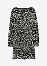 Vero Moda Curve sieviešu kleita Friga Ls Short Dress Jrs Boo Cur ir lieliska izvēle ikdienas valkāšanai mājās, darbā vai brīvdienās. Kleitai ir apaļš kakla izgriezums un brīvs dizains, kas nodrošina komfortu un kustību brīvību, savukārt interesantais raksts piešķir tai unikālu izskatu. Sasienamā josta viduklī un gumija piedurkņu galos ļauj kleitai labi piegult un izcelt figūru, padarot to par elastīgu un stilīgu tērpu.