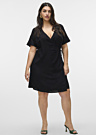 Vero Moda Curve sieviešu kleita Mymilo ir skaists un sievišķīgs tērps, kas izceļas ar pārlikuma piegriezumu un īsām piedurknēm. Kleitai ir sasienama josta viduklī, kas piešķir eleganci un izceļ sievietes siluetu. Tā ir izgatavota no LENZING™ ECOVERO™ šķiedras, kas iegūta no sertificētiem atjaunojamiem koksnes avotiem, izmantojot videi draudzīgu ražošanas procesu un ievērojot augstus vides standartus.