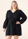Pievilcīga un tīra stila Vero Moda Curve kleita der dažāda rakstura dienām. Ar garām piedurknēm kleita ir ar V-veida kakla izgriezumu, viegla un elpojoša. Viduklī ir sasienama josta un piedurkņu galos gumijas. Foto: augums 167 cm valkā 46 izmēru.