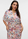 Vero Moda Curve sieviešu kleita Menny ir skaista un vasarīga, izceļoties ar īsām piedurknēm un interesantu rakstu. Kleitai ir sasienama josta viduklī, kas piešķir eleganci un izceļ sievišķību. Tā ir izgatavota no LENZING™ ECOVERO™ šķiedras, kas iegūta no sertificētiem atjaunojamiem koksnes avotiem, izmantojot videi draudzīgu ražošanas procesu un ievērojot augstus vides standartus.