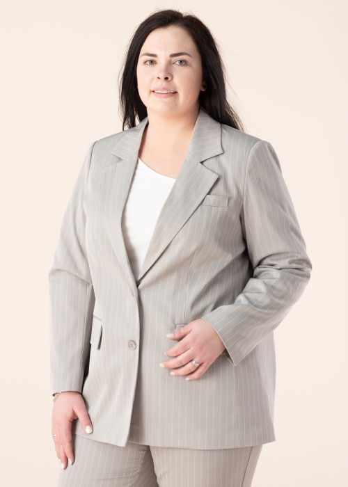 Klasiskas un lietišķa Vero Moda Curve žakete rada svaigu un gaumīgu kopskatu. Lietišķas žakete ir ar atlokamu apkakli un ar svītrainu rakstu. Priekšpusē pogu aizdare, sānos kabatas ar atlokiem un aizmugurē šķēlums. Saskaņo ar dažādiem apģērbiem un radi jaunus stilus! Foto: augums 175 cm valkā 46 izmēru.