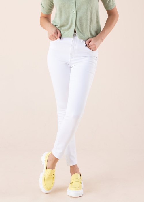 Super elastīgas un ļoti mīkstas Vero Moda džinsu bikses ar skinny piegriezumu ir ērtas! Augstā jostasvieta aizdarāma ar rāvējslēdzēju un pogu. Biksēm ir trīs priekšējās kabatas, no kurām viena ir mazāka, bet aizmugurējās kabatas ir divas. Modeles augums 176 cm, valkā S-32 izmēru. Materiāls: kokvilna 46%, poliesters 32%, pārstrādāta kokvilna 20%, elastāns 2%. Krāsa: balta.