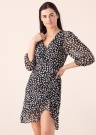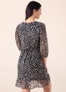 Šajā vilinošajā Vero Moda kleitā ar aizraujošu rakstu jūties pašpārliecināta jebkurā situācijā! Priekšpusi rotā V formas apkakle, skaisto caurspīdīgo piedurkņu galos ir elastīgas gumijas. Romantiskumu piešķir volāns, kas rotā kleitas apakšmalu, un savelkamā detaļa kreisajā pusē, ar kuru var izveidot sievišķīgāku siluetu. Kleitai ir poliestera odere. Modeles augums 177 cm, valkā S izmēru. Kopējais garums no apkakles līdz apakšmalai 97 cm. Materiāls: ārējā virsma pārstrādāts poliesters 100%. odere poliesters 100%. Krāsa: melna/rakstaina.