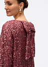 Vero Moda sieviešu kleita Naja ir skaista un sievišķīga, izceļoties ar savām garajām piedurknēm. Kleitas virspusē ir spīdīgi fliteri, kas piešķir tai elegantu un svinīgu izskatu. Aizmugurē kleitu rotā bante, kas piešķir papildu šarmu un izsmalcinātību.