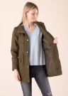 Šis Vero Moda pavasara-rudens parka ir ideāla izvēle ikdienas valkāšanai! Augšējais audums ar daudzām detaļām piestiprināts ar klasisku vienvirziena fiksatoru, uz kura piestiprināta apdrukāta auduma sloksne. Plašā aukliņā regulējama kapuce nodrošina aizsardzību vēsākā laikā, un šķēlums piedurkņu galos ir nostiprināts ar audumu Priekšpusi ilustrē daudzas kabatas ar divām krūšu kabatām ar rāvējslēdzēju un divām priekšējām kabatām ar pārloku katrā pusē. Regulējamā centrālā daļa dod iespēju parkā izveidot sievišķīgāku siluetu. Mīkstajai poliestera oderei ir praktiska pakarināšanas cilpa. Modelis ir 177 cm garš un valkā S izmēru. Kopējais garums no aizmugures līdz apakšai 77 cm. Materiāls: virsmas poliesters 80%, kokvilna 20%, odere poliesters 100%. Krāsa: zaļa.